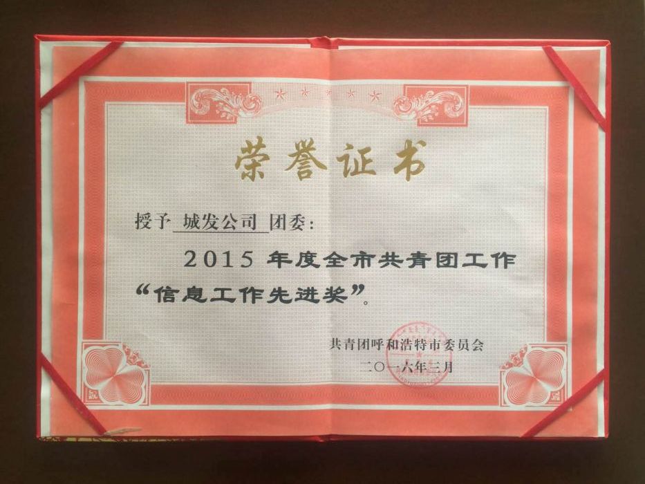 城發(fā)公司團(tuán)委榮獲“2015年度全市共青團(tuán)工作信息工作先進(jìn)獎(jiǎng)”